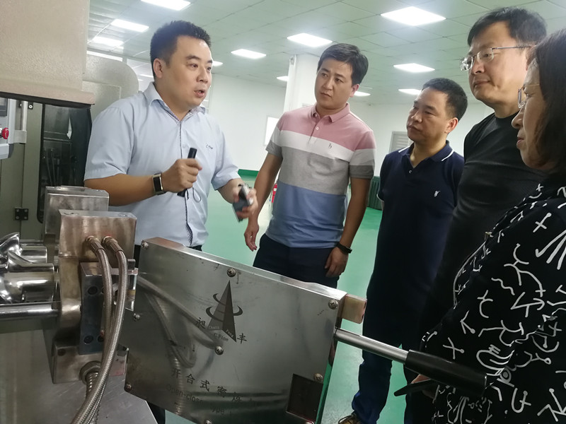 舒飛龍總經(jīng)理給中國(guó)石油吉林石化公司考察團(tuán)領(lǐng)導(dǎo)介紹昶豐新研發(fā)產(chǎn)品