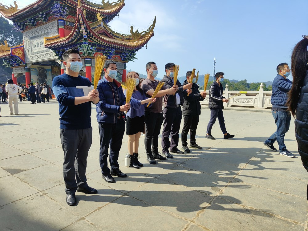 2月12日上午,陽光明媚,前來東莞觀音山朝拜祈福的市民和各地游客絡繹不絕,一些人專門慕名而來燒香祈福,期盼生活平安幸福。