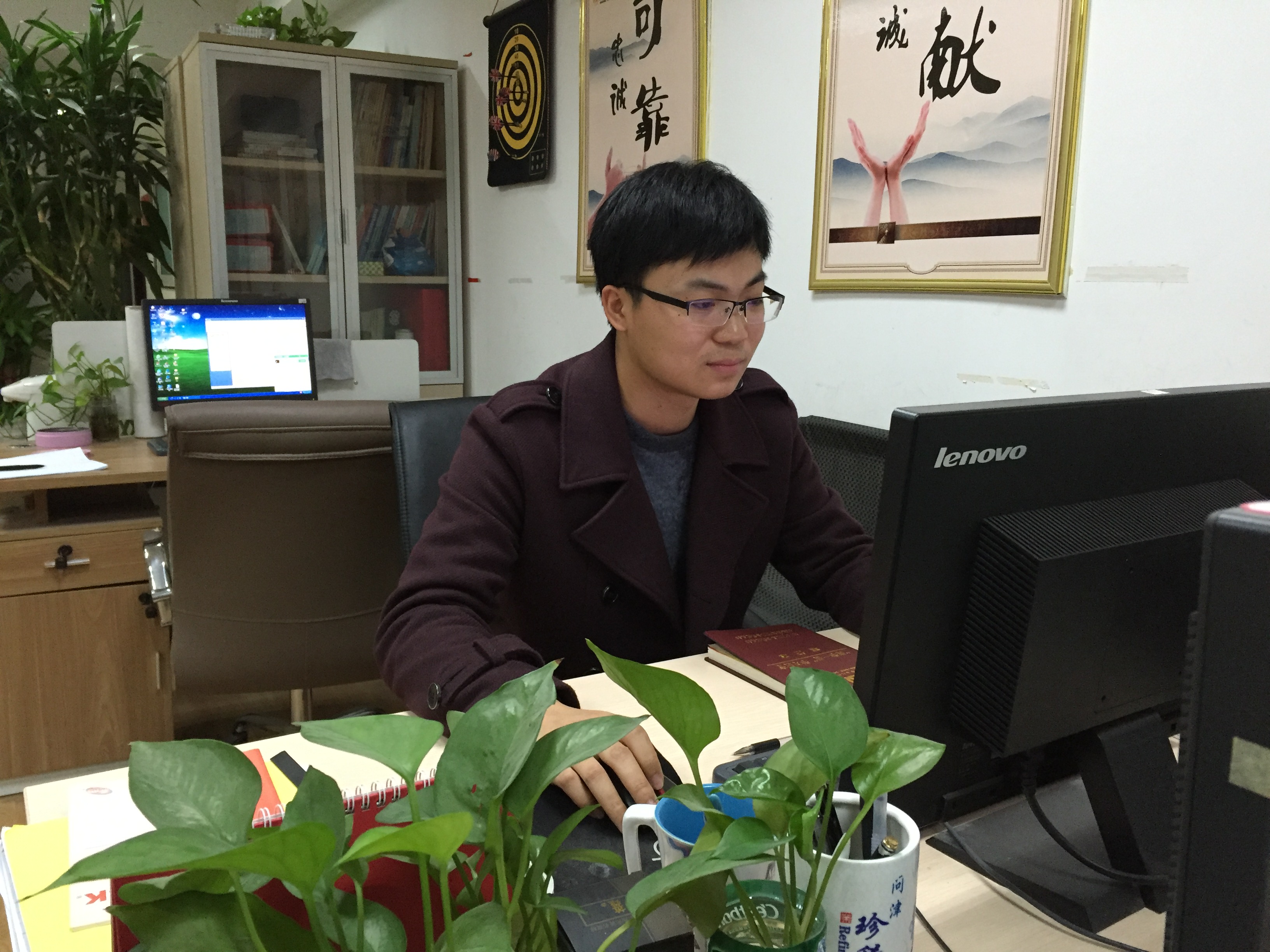 一個瘦高的90后小伙子,初見時,他正忙于工作,在電腦桌前敲打著什么,正擔心會打擾他時,他卻已經熱情地招呼著我們坐下,當得知我們想要采訪他時,他顯得既有點靦腆,又有點驚喜,他就是今天我們的主人公——周昌文。