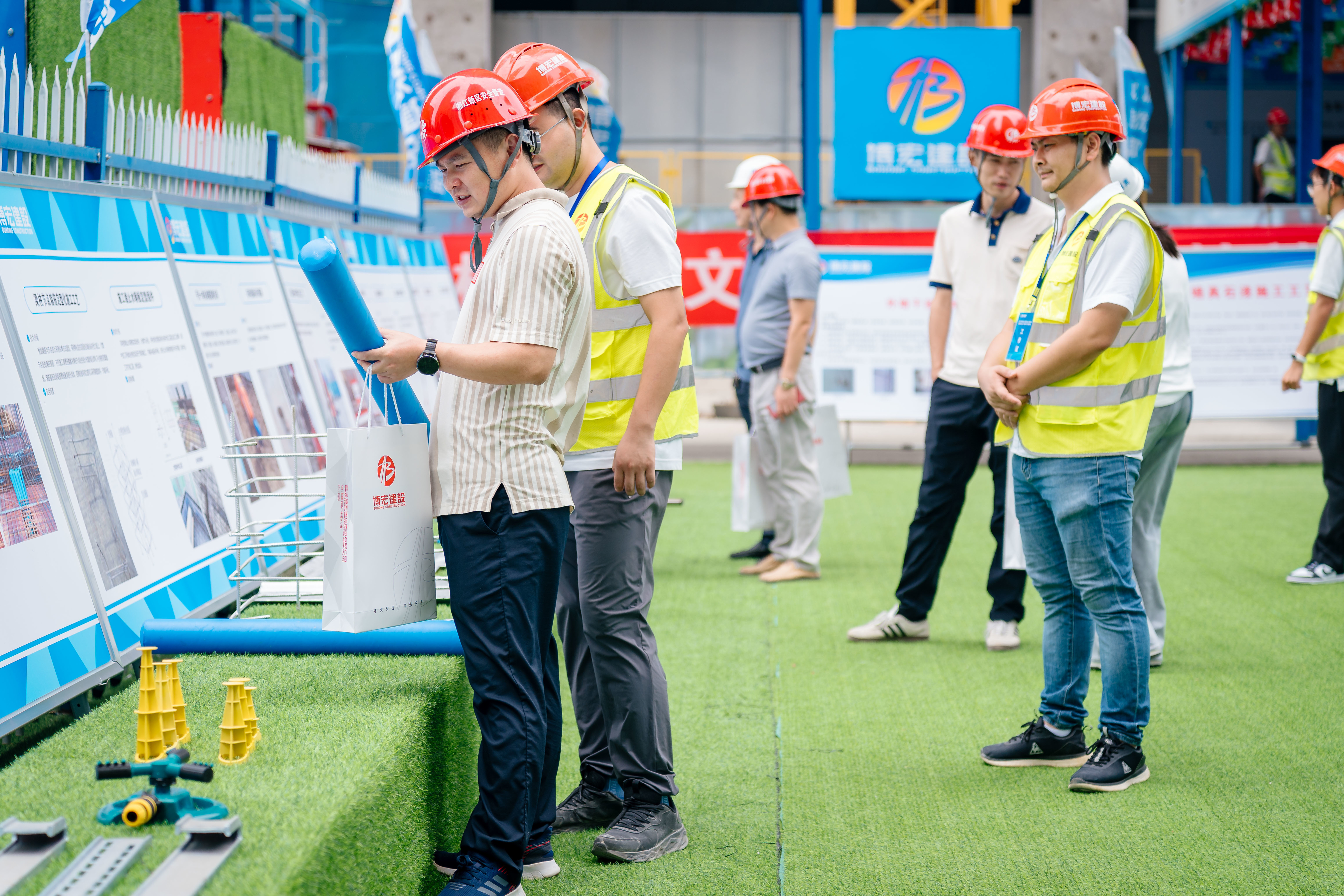 本次觀摩涵蓋安全文明標準化、工程質量管控、智慧建造、綠色建造等重點內容,設置智慧工地、實體樣板、精裝樣板、質量工序樣板、安全體驗區、園林展示區、品質地庫展示區等十大展區。在講解員的講述下,大家通過現場觀看、聽取解說、翻閱資料等方式,對項目各個標準化板塊進行深入學習和交流。
